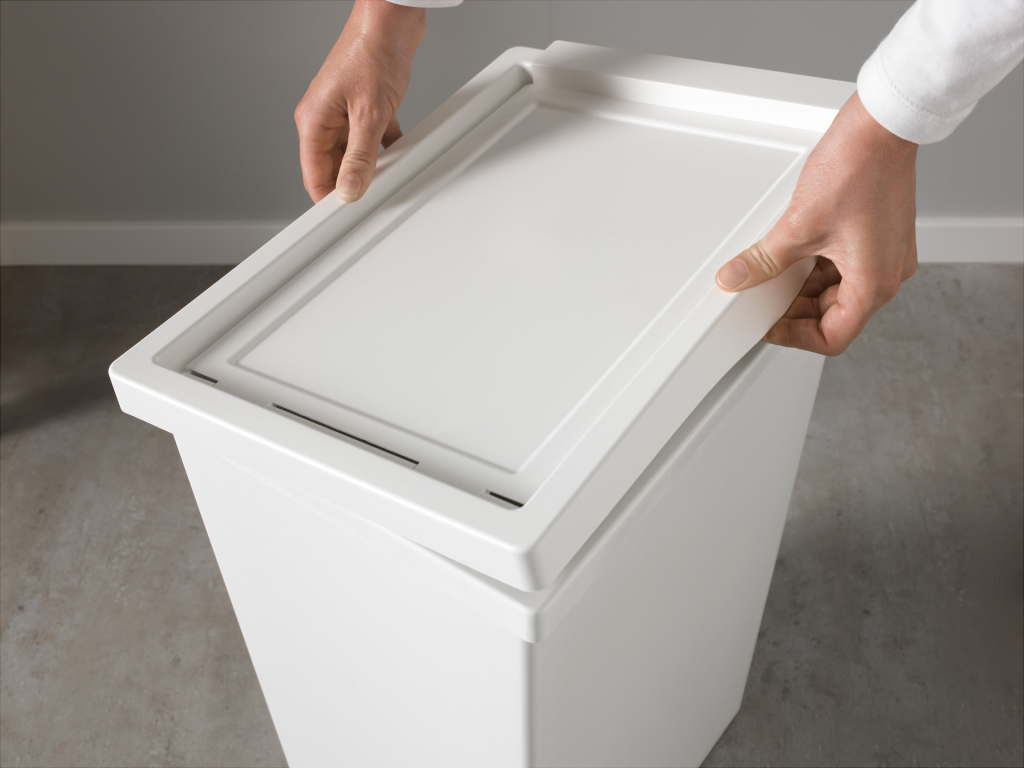 The bin comes with a lid, but you can just discard the lid altogether. Two FILURs fit just right, so that you can lift both out if you move them a little: