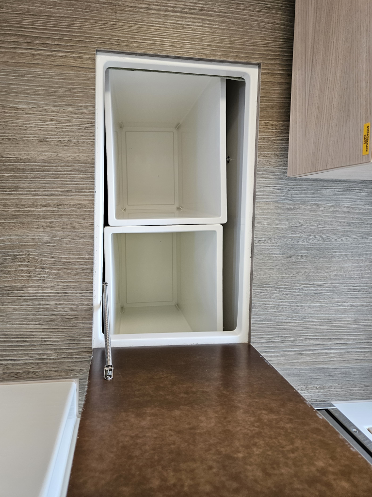 I spent quite some time searching for a couple of trash bins that would fit the large drawer opposite the pantry, but I did not find anything good. Those that did fit were usually much smaller than the drawer, thus a lot of space was wasted.
